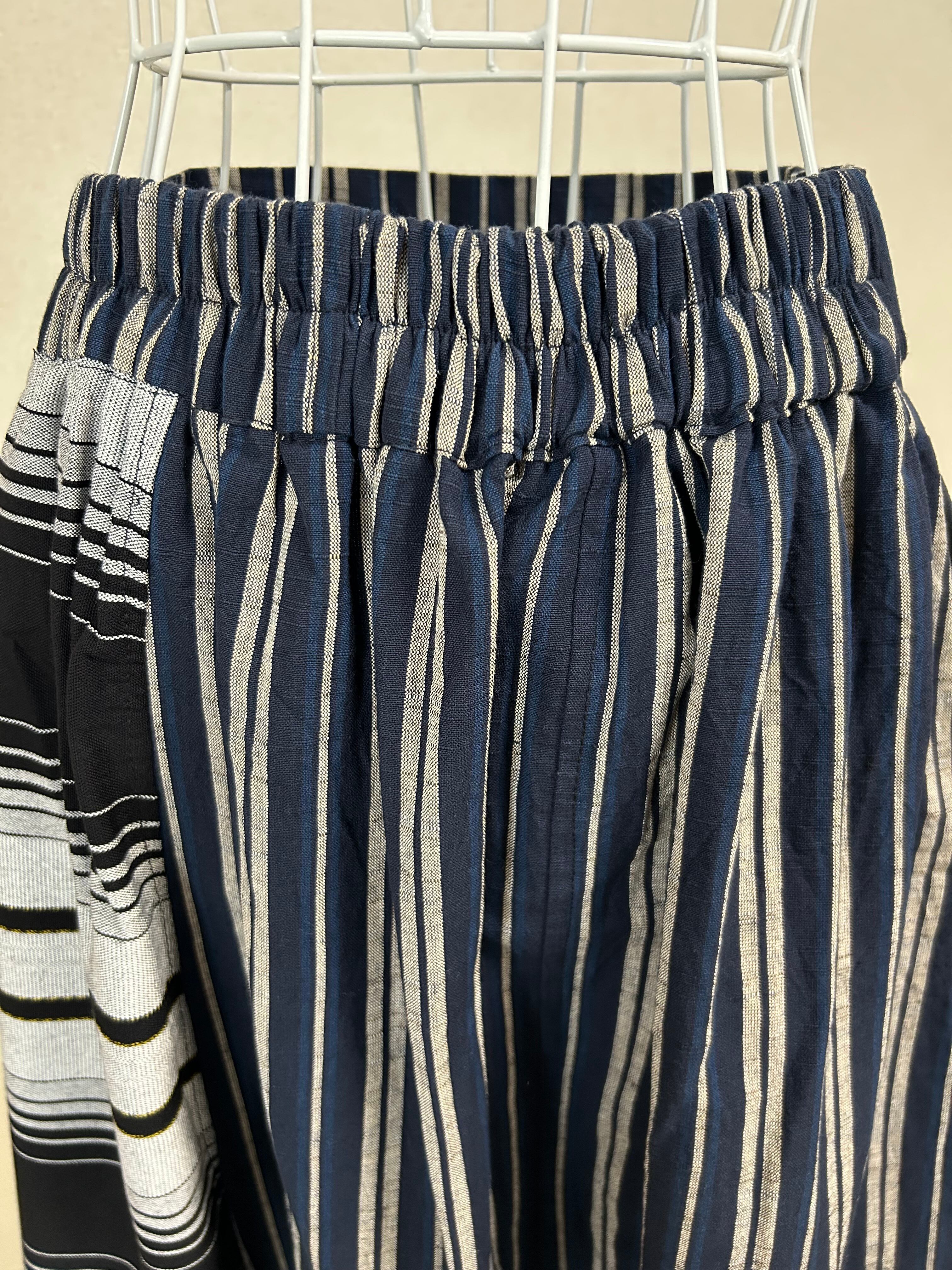 このタックスカートは、会津木綿とミャンマー布を使った一品です。