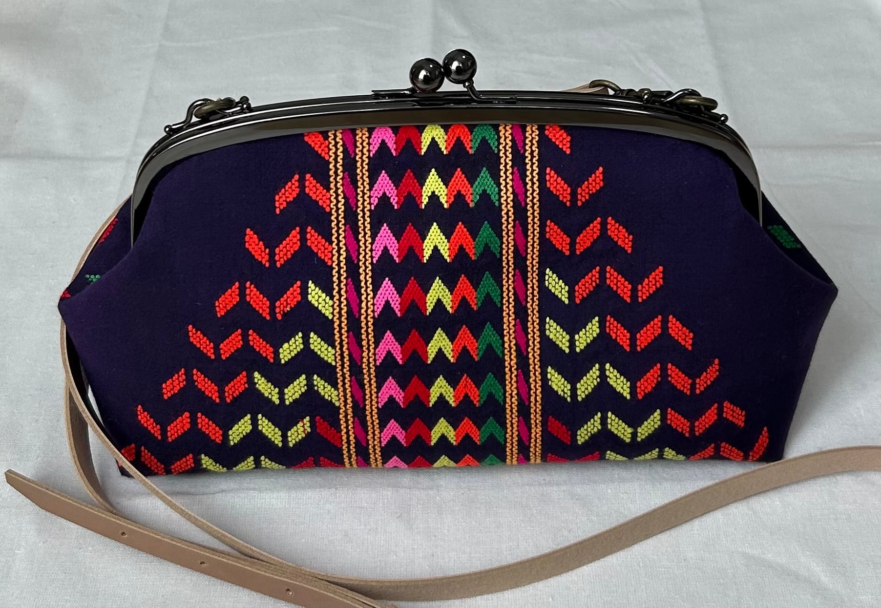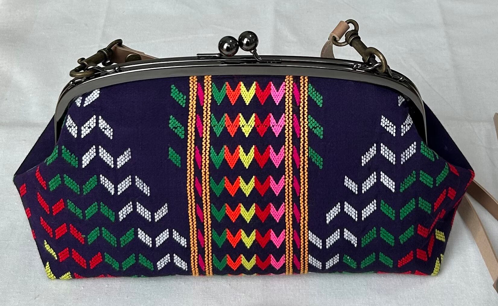 このお散歩ショルダーバッグは、表布にミャンマー・カチン民族の伝統布を使用しています。